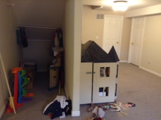 | play area - Dave plans to make this area a really fun place for the kids I'm excited about the shelves and organization area for all the toys, but they're just excited to have their own place! |